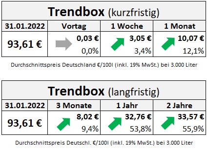 Der erste Monat des Jahres ist vorbei und endet mit dem höchsten Preisniveau seit Jahren. Zwar ist der durchschnittliche Heizölpreis von Freitag auf Montag nahezu gleich geblieben, doch seit Monatsbeginn hat er um über 12 Prozent zugelegt. Der große Preistreiber bleibt der Rohölpreis an den Ölbörsen. Hier kennen die Kurse seit Monaten nur noch eine…