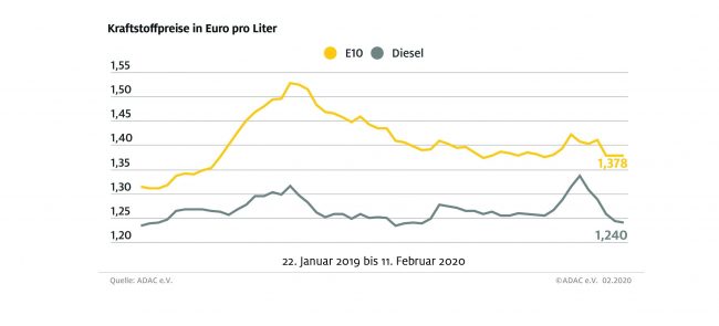 München (ots) Die Spritpreise an den Tankstellen sind gegenüber der Vorwoche leicht gesunken. Laut aktueller Auswertung des ADAC kostet ein Liter Super E10 im Bundesmittel 1,378 Euro, das sind 0,1 Cent weniger als in der Vorwoche. Diesel verbilligte sich um 0,3 Cent auf durchschnittlich 1,240 Euro je Liter. Dies ist der fünfte wöchentliche Preisrückgang in…