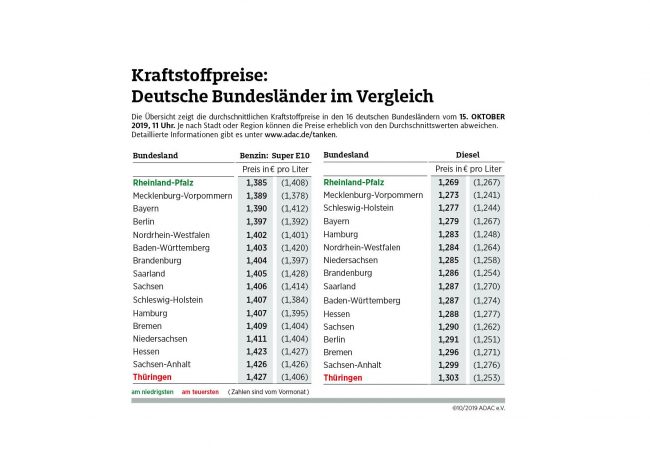 München (ots) Autofahrer in Thüringen und Sachsen-Anhalt müssen deutschlandweit derzeit die höchsten Preise für Kraftstoff bezahlen. Ein Liter Super E 10 kostet in Thüringen im Schnitt 1,427 Euro, für einen Liter Diesel sind 1,303 Euro fällig. In Sachsen-Anhalt, dem zweitteuersten Bundesland, liegt der Preis für Super E 10 bei 1,426 Euro und für Diesel bei 1,299…