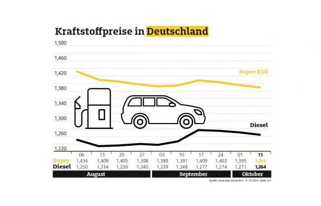 München (ots) In dieser Woche können Autofahrer entspannt an die Zapfsäulen fahren, denn laut aktueller Auswertung des ADAC sind die Preise für Diesel und Super rückläufig. Vor allem bei Super E10 ist der Rückgang mit 1,2 Cent pro Liter deutlich. Ein Liter kostet im bundesweiten Durchschnitt nun 1,384 Euro. Beim Diesel fällt der Preisrückgang mit 0,1…