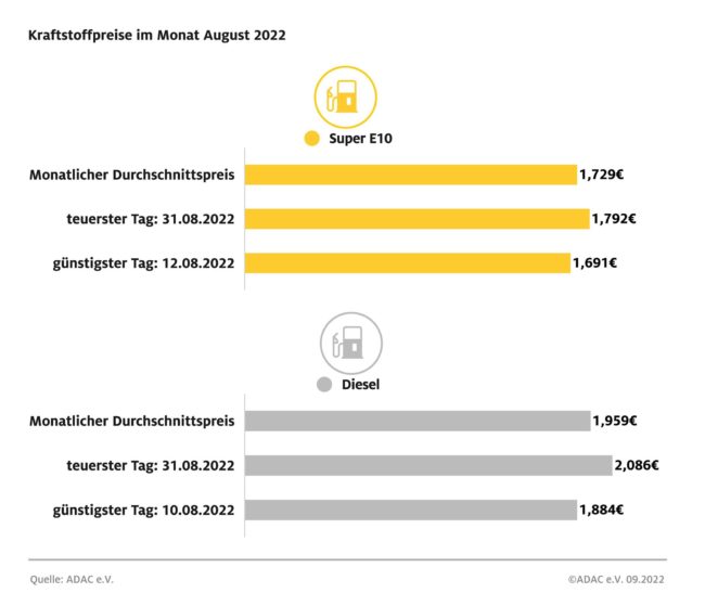 ADAC Ende des Tankrabatts lässt Spritpreise explodieren – Benzinpreis steigt seit letzter Woche um fast 22 Cent, Diesel um über 8 Cent – Diesel um 16,5 Cent teurer als Super E10