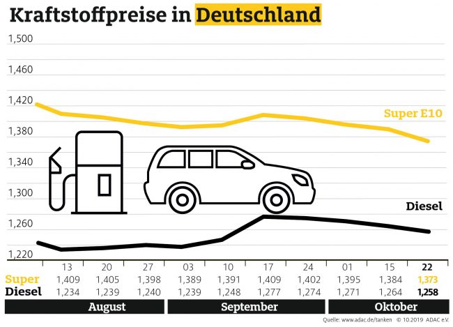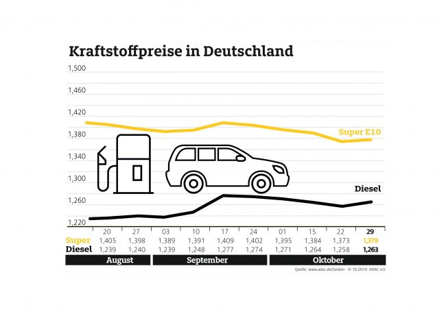 Benzin im Oktober billiger, Diesel teurer – Preisdifferenz zwischen Benzin und Diesel so gering wie zuletzt im März