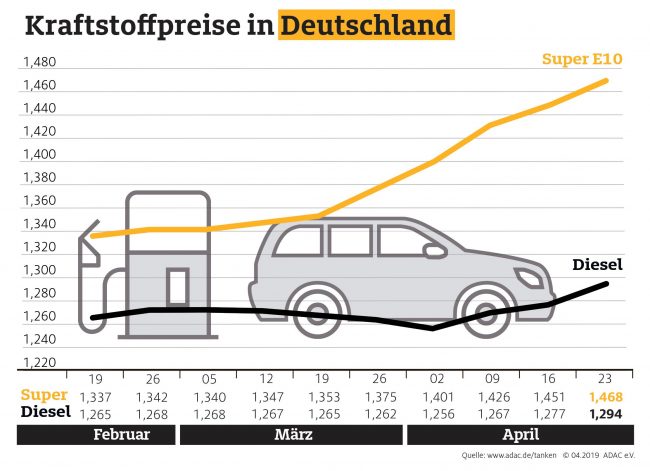 München (ots) Die Preise an den Tankstellen bewegen sich in der Karwoche weiter nach oben, Benzin kostet derzeit so viel wie zuletzt Anfang Dezember. Laut aktueller Auswertung des ADAC müssen Autofahrer für einen Liter Super E10 im Bundesmittel 1,451 Euro bezahlen, 2,5 Cent mehr als in der Vorwoche. Diesel verteuerte sich um 1,0 Cent auf…