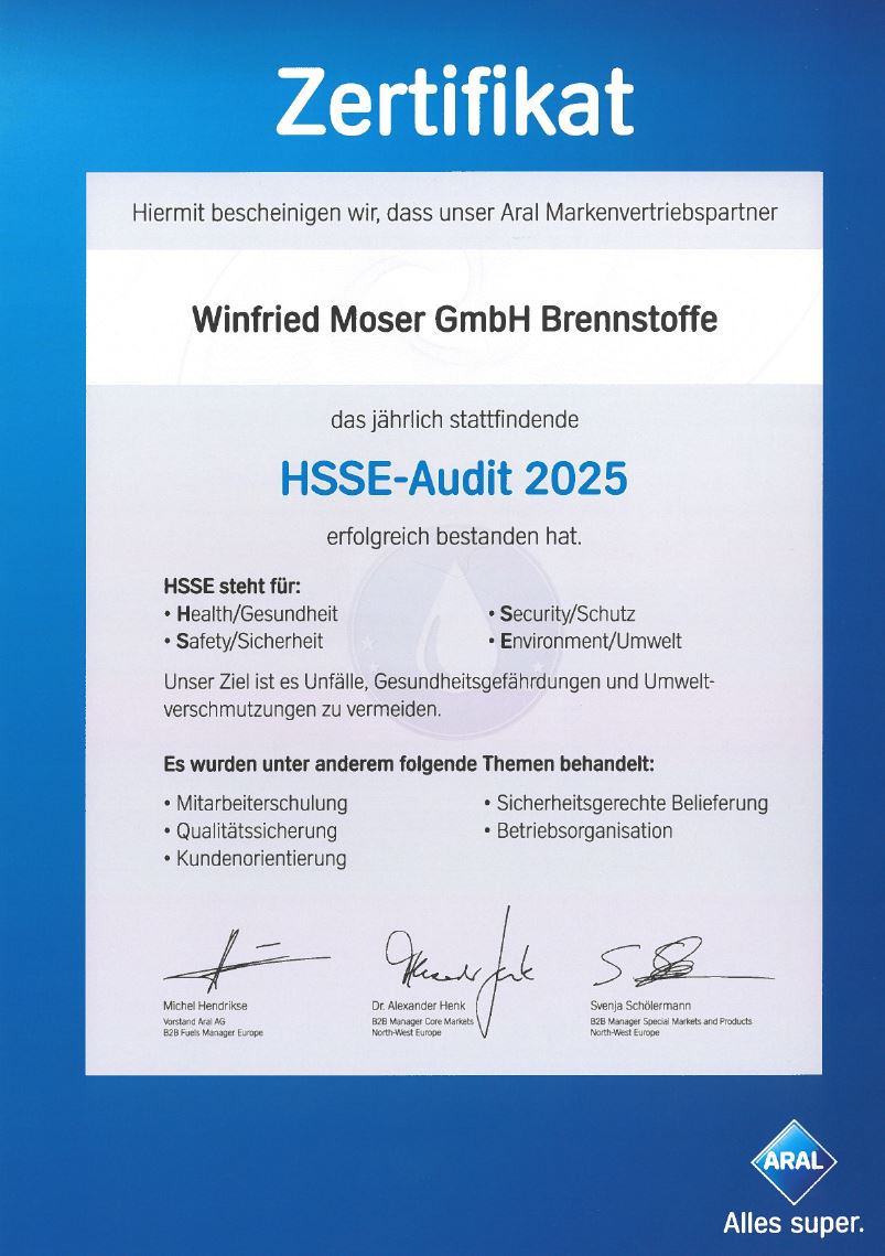 Wir sind jährlich durch den TÜV-Nord im Auftrag der Aral zertifiziert.